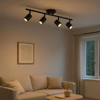 D-Lite Spot Trop Metal Sandy Black si distingue per il perfetto equilibrio tra design e funzionalità. I quattro faretti orientabili consentono un’illuminazione mirata – ideale per mettere in risalto quadri, nicchie o zone specifiche della stanza. La finitura nero sabbia aggiunge un tocco sofisticato e discreto, adattandosi facilmente a palette cromatiche e ambienti diversi. Inoltre, la compatibilità con le lampadine GU10 ti consente di scegliere temperatura e intensità luminosa secondo le tue preferenze.