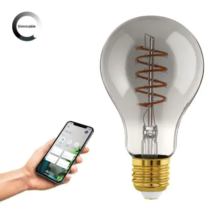 La Eglo Connect.Z Smart LED Pera E27 Filamento Smokey 4W 150lm - 820 Bianco Molto Caldo | Dimmerabile - Sostitutiva 15W è la perfetta sostituzione per la tua lampada convenzionale 15W con attacco E27 grazie alla sua tecnologia LED. Passare a LED ti offrirà tanti vantaggi!
