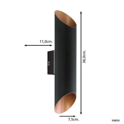 Eglo Luce Da Parete Agolada Esterni Acciaio Zincato Nero, Rame 7.4W 660lm - 830 Luce Calda -