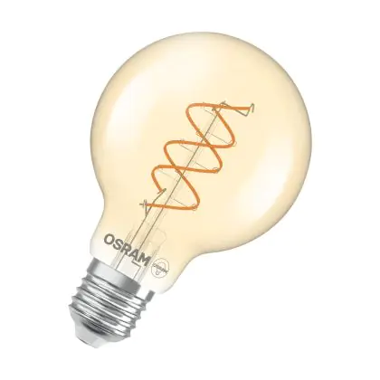 La Osram Vintage 1906 LED E27 Globe Filamento Twist Oro 8W 806lm - 922 Bianco Molto Caldo | Miglior Resa Cromatica - Dimmerabile - Sostitutiva 60W è la perfetta sostituzione per la tua lampada convenzionale 60W con attacco E27 grazie alla sua tecnologia LED. Passare a LED ti offrirà tanti vantaggi!