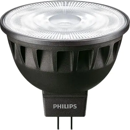 La Philips Master LED Faretti GU5.3 MR16 6.7W 460lm 24D - 940 Bianco Freddo | Miglior resa cromatica - Dimmerabile - Sostitutiva 35W è perfetta per la sostituzione della classica lamapda alogena35W GU5.3 con colore della luce 940 Bianco Freddo. Questa lampadina ha una forma Spot con un diametro di 50mm. La distanza tra I due pins è di 5.3mm. Queste lampade hanno bisogno di un trasformatore poiché operano a 12V. I trasformatori possono essere trovati in "Accessori" su questa pagina. Qual’è il trasformatore adatto? Dipende dal numero di lampade che si vuole installare. Il nostro servizio di vendita e assistenzati ti aiutera nella scelta. Passare a LED offre molti vantaggi!